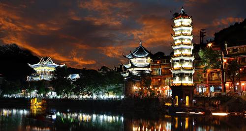 下午安排:乘車赴【芙蓉古鎮(zhèn)】(贈(zèng)送門票、景區(qū)環(huán)保車和酉水畫廊已含),山水如畫,多情的酉水養(yǎng)育了世世代代的土家兒女,也造就了沿岸動(dòng)人的風(fēng)光,酉水畫廊納含著芙蓉鎮(zhèn)的草木、山水、人兒,一道道美麗的彩虹是它編織的最美西蘭卡普。這里得酉水舟楫之便,上通川渝,下達(dá)洞庭,素有“楚蜀通津”之稱。因謝晉執(zhí)導(dǎo),劉曉慶、姜文主演的電影《芙蓉鎮(zhèn)》在此取景而出名,于是人們便把此地叫做芙蓉鎮(zhèn)。時(shí)代變遷,歷久彌新,更因其獨(dú)特的原始人文,靜謐山水成為新時(shí)代湖南旅游新寵。芙蓉古鎮(zhèn)大瀑布,酉水碼頭繁華依舊!乘車赴神秘湘西深處鳳凰古城,這里被譽(yù)為遠(yuǎn)去的家園,夢(mèng)中的故鄉(xiāng),邂逅邊城的燈火闌珊,品味獨(dú)特的夢(mèng)里苗疆。游覽被新西蘭著名作家路易艾黎稱贊為中國(guó)最美麗的小城--【鳳凰古城】,體驗(yàn)和感受鳳凰古城的九大精華:一座青山抱古城、一泓沱水繞城過(guò)、一條紅紅石板街、一道風(fēng)雨古城墻、一座雄偉古城樓、一個(gè)美麗彩虹橋、一排小橋吊腳樓、一批聞名世界的人、一個(gè)國(guó)家級(jí)非遺文化遺產(chǎn)!