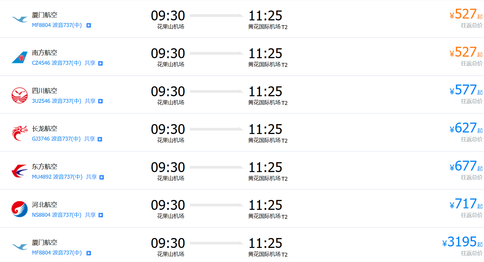 連云港花果山機場沒有直達張家界荷花機場的航班,有從連云港直達長沙黃花機場的航班,具體參考如下: