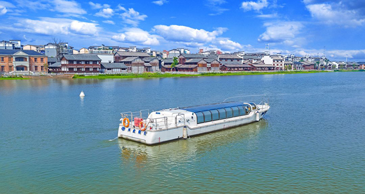 入夜,槳聲燈影里的穿紫河,一艘艘游艇載著游人溯河而上,實景劇《夢回穿紫河》在兩岸次第呈現(xiàn),讓游人享受美輪美奐的文化洗禮。