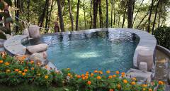 張家界萬(wàn)福溫泉度假區(qū)配套有按準(zhǔn)五星級(jí)標(biāo)準(zhǔn)打造的酒店主樓、附樓各一棟,標(biāo)準(zhǔn)客房400余間;能容納800人的大、中、小型培訓(xùn)會(huì)議室及教學(xué)會(huì)議就餐場(chǎng)所;溫泉水世界景區(qū)面積約60畝,建設(shè)有接待大樓1棟,面積4000多平方米。擁有戶外99個(gè)原生態(tài)森林泡池、夏季歡樂(lè)水世界海浪池、三彩滑道、螺旋皮筏滑道、歡樂(lè)水寨等夏季水上項(xiàng)目。萬(wàn)福溫泉?dú)g樂(lè)谷戶外拓展基地,規(guī)劃面積100畝,分為戶外拓展區(qū)、拉丁車賽道、無(wú)動(dòng)力樂(lè)園、歡樂(lè)滑草、勇敢者營(yíng)地、叢林穿越、度假森林等??蛇M(jìn)行研學(xué)教學(xué)、體驗(yàn)民俗文化、軍事拓展培訓(xùn)等。目前是湖南地區(qū)規(guī)模領(lǐng)先、配套設(shè)施齊備的中醫(yī)藥康養(yǎng)精品景區(qū)和中小學(xué)研學(xué)實(shí)踐教育基地。
