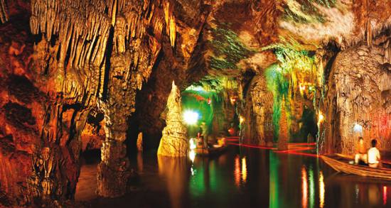 九天洞進(jìn)入九天洞如同到了一個(gè)寧?kù)o的世界,在洞內(nèi)讓人有掙脫樊籬,還我自然之感。我們?cè)诙磧?nèi)看到的各式各樣的自然造型,它們是那樣古樸,那樣自然,那樣錯(cuò)落有致,毫無(wú)人工雕鑿與粉飾的痕跡。我們?cè)诙磧?nèi)聽到的是潺潺的流水聲與飛燕的撲翅聲,當(dāng)然還有蝙蝠、巨鼠的瞿瞿聲。除此外,洞內(nèi)還有許多南來(lái)北往的通幽曲徑:有的去舞廳,有的進(jìn)城門,有的下暗河,有的上天窗。