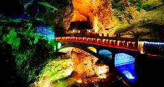 黃龍洞是張家界武陵源風(fēng)景名勝中著名的溶洞景點(diǎn),因享有“世界溶洞奇觀”“世界溶洞全能冠軍”“中國(guó)最美旅游溶洞”等頂級(jí)榮譽(yù)而名震全球?,F(xiàn)已探明洞底總面積10萬(wàn)平方米;洞體共分四層,洞中有洞、洞中有山、山中有洞、洞中有河。經(jīng)中外地質(zhì)專(zhuān)家考察認(rèn)為:黃龍洞規(guī)模之大、內(nèi)容之全、景色之美,包含了溶洞學(xué)的所有內(nèi)容。黃龍洞以其龐大的立體結(jié)構(gòu)洞穴空間、豐富的溶洞景觀、水陸兼?zhèn)涞挠斡[觀光線(xiàn)路獨(dú)步天下。