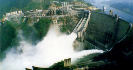 1986年8月2日,東江水電站正式關(guān)閘蓄水,雙曲大壩鎖住滾滾東江水,將其定格成碧波萬(wàn)頃的湘南明珠——東江湖。大壩兩側(cè)有三條滑雪式溢洪道,每當(dāng)瀉洪時(shí),湖水從溢洪道飛瀉而下,再騰空躍起,頃刻間化成雨霧,迷漫整個(gè)峽谷,其勢(shì)如萬(wàn)馬奔騰,其聲似萬(wàn)鈞雷霆。身歷其境,如夢(mèng)如幻,仿佛在縹緲之中,羽化飛升。即使在幾里開外,仍感水星拂面,頗具“盤空舞雪飛泉落,撲面銀花細(xì)雨來(lái)”的詩(shī)畫意境。