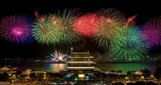 橘子洲的煙花表演,杜甫江閣可謂是欣賞煙花的最佳場(chǎng)所,江邊美景,盡收眼底!