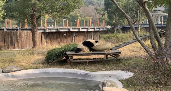 大熊貓館是步行區(qū)的標志性建筑之一,場館面積370平方米,有室內(nèi)場館和室外活動場兩部分組成。一條長橋穿行于室外活動場,人行其中可更接近我們的國寶大熊貓。園內(nèi)有2只從四川成都熊貓基地引進的亞成體大熊貓“貝貝”和“雙雙”。在大熊貓室內(nèi)展館設(shè)有大熊貓紀念品專賣商店。游客可以將做工精美的熊貓玩具、文具等紀念品帶回家。
