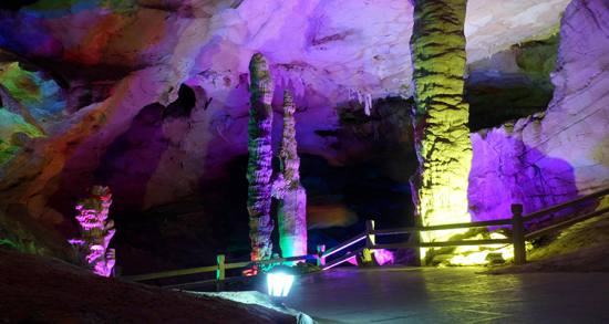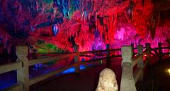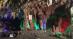 波月洞是以地下溶洞景觀為主體,地面景點相陪襯的綜合性公園,集游山、觀洞景、望瀑布、巖溶研究于一體的風(fēng)景名勝區(qū)。整個洞府以迷宮大廳為中心前部洞廳寬廣宏偉,氣勢磅礴;后部洞廳線條密集,晶瑩剔透。洞中千柱挺立,萬裙倒掛,山川、田野、瀑布、石柱、石幔、石鐘乳比比皆是,一步一景、步步是景,景景神奇。