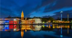 愛(ài)情谷,這里可以看到瑞士大鐘塔和歐洲小鎮(zhèn),處處都是典型的歐式建筑。右邊的丹麥國(guó)王加冕城堡,是個(gè)明星夢(mèng)工廠和恐怖城。與它相鄰的那座綠頂紅墻的建筑是荷蘭海牙國(guó)際法院,內(nèi)部是一個(gè)世界蝴蝶博覽館,在那里可以免費(fèi)欣賞到各種精美的蝴蝶標(biāo)本。左邊的湖水叫天鵝湖,取名于俄國(guó)作曲家柴可夫斯基的同名舞劇《天鵝湖》,湖邊那三座高大的風(fēng)車是荷蘭的象征。右邊地上的泉眼是旱噴泉,在旱噴泉上方的建筑是意大利圣三山教堂,它與原型比例是1:1.5,每年都有許多對(duì)新人在這里舉行西式婚禮。這里還有一個(gè)歐洲小鎮(zhèn)仿建的是德國(guó)和法國(guó)民居,比例為1:1的歐式風(fēng)格,被開(kāi)放成商場(chǎng)和服裝出租點(diǎn)。