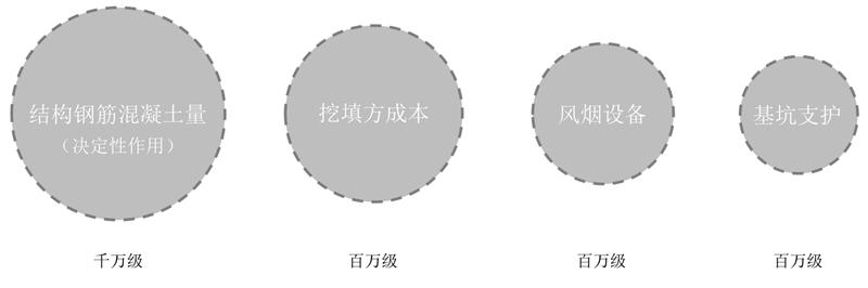 結(jié)論2:造價組成,相比于傳統(tǒng)車庫,專利車庫大大降低了鋼筋混凝土、挖填方、風煙設(shè)備等成本,省投資。