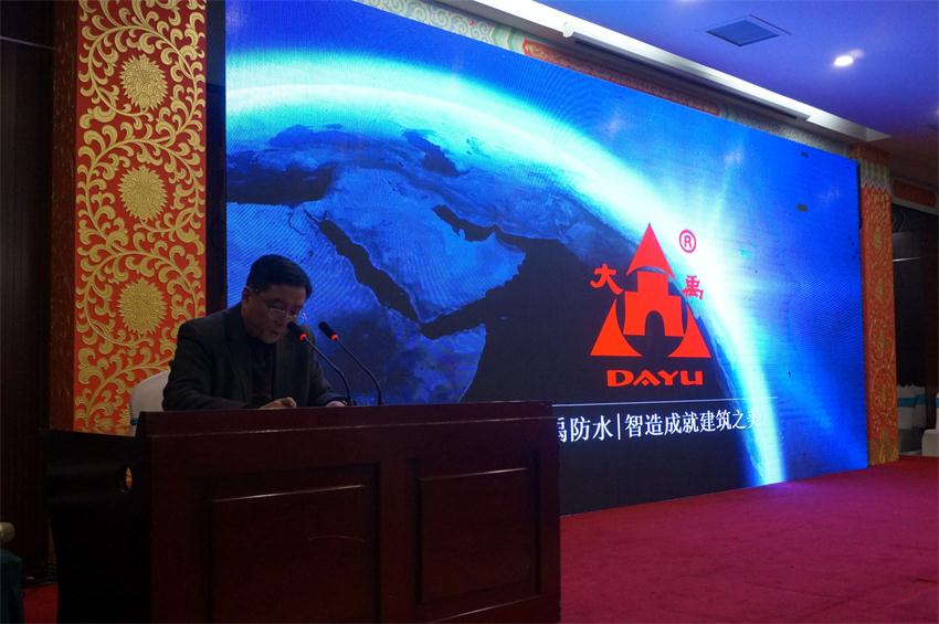 議題之二是中國十大防水品牌企業(yè)遼寧大禹集團,為本次盛會帶來了防水新技術。圖為遼寧大禹集團銷售副總經(jīng)理王健到會祝賀。