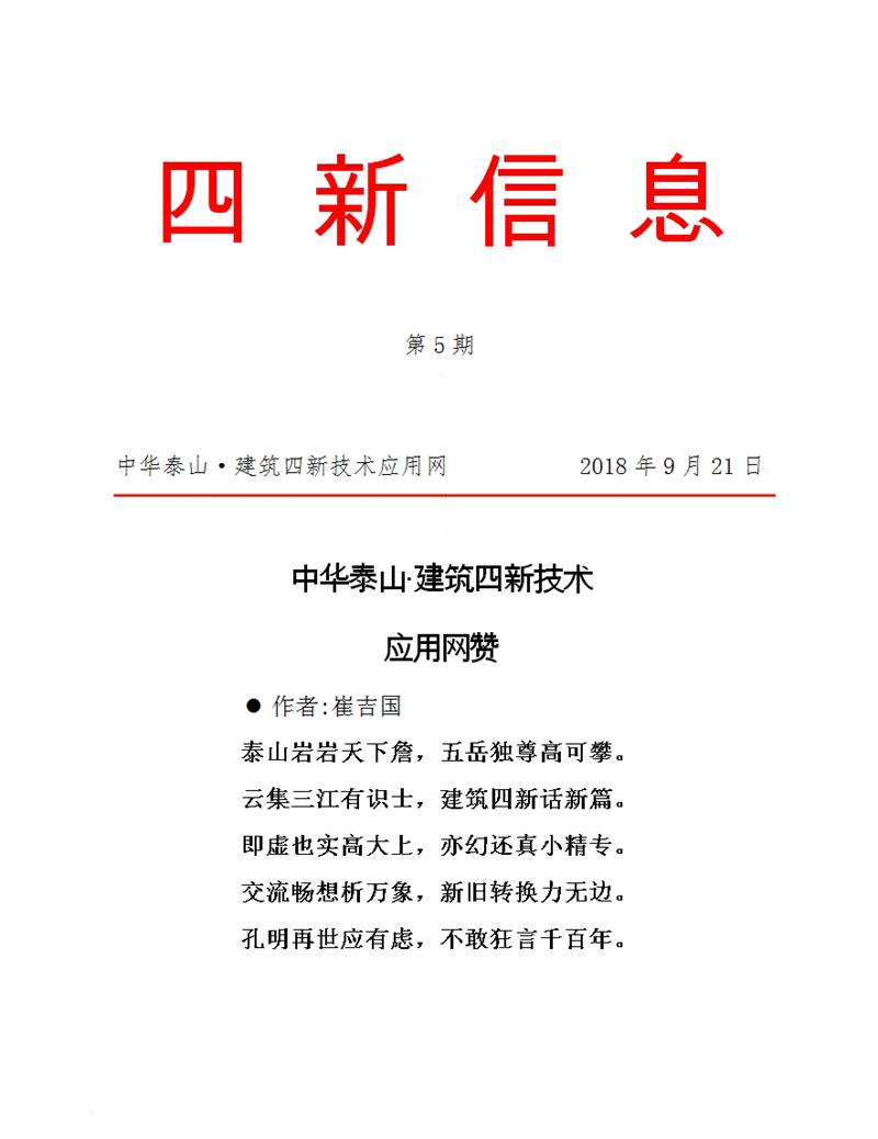 四新信息:中華泰山*建筑四新技術(shù)應(yīng)用網(wǎng)贊